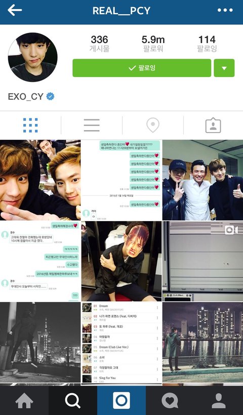 찬열 인스타 특징 : 팬 소통왕. 자작곡 많이 올리고 피드백 받고 행복해하는듯 ㅋㅋ 팬들을 위한 노래도 많이 만들고.. 또 본인의 일상을 궁금해 하는 팬들을 위해 여행가면 꼭 그 장소에 대한 힌트를 남김 ㅋㅋ
