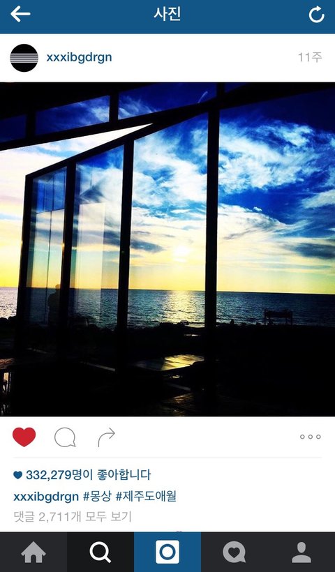 지디 인스타 특징 : 일상 공유. 본인이 여행하거나 하고 있는 일에 관한 사진 많이 올림 ㅋㅋ 엽짤까지 ㅋㅋ