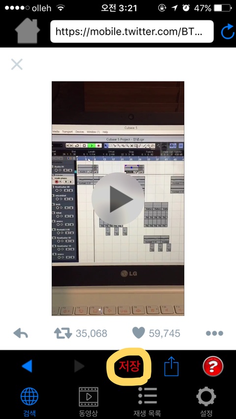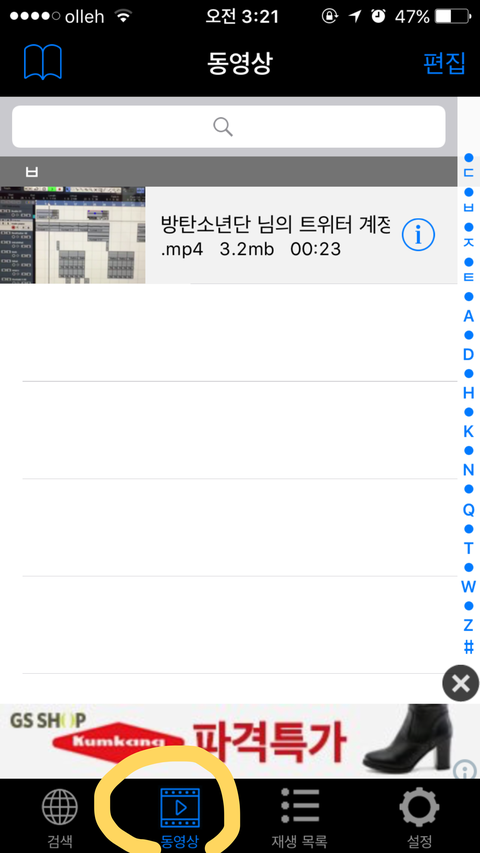 아래에 동영상을 누르면 다운받은 영상이 뜰거에유~