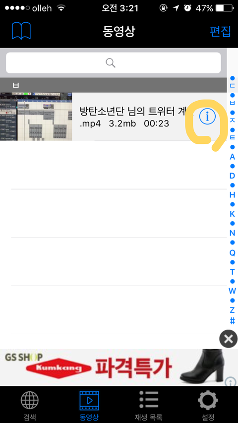 다운받은 영상 옆에 i를 누르면