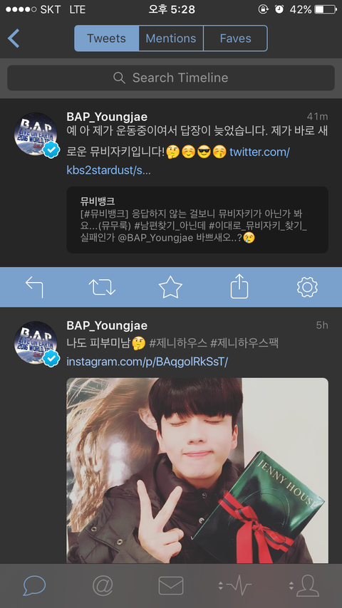 아ㅋㅋ영재ㅋ운동중이라 답장이 늦었대ㅋ