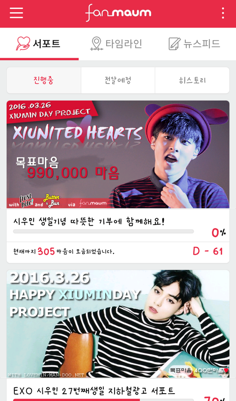 팬마음 하나 더 늘었다 시우민 기부 서포트