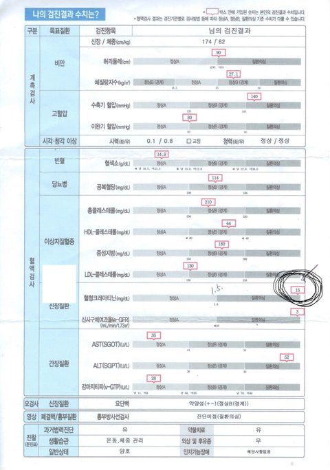 뭐지...?? 하는 생각에 건강검진 받은 병원에 전화를 걸었고병원에서는 15라는 수치가 잘못적은거라는 말을하네요1.5였고 정상의 범주에 속하는건데