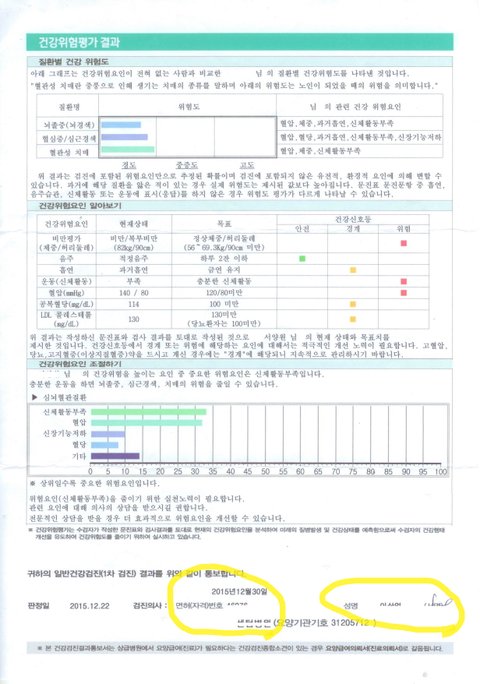 다행히 저희부모님 두분다 큰건강상에 문제가 없으시구 큰수술 한번 받지않으신 분들이라큰걱정은 안하고 결과표를 기다리고있었어요..