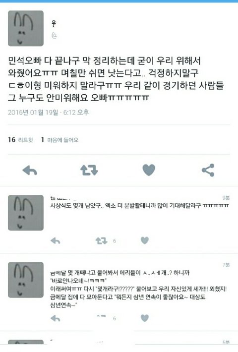 오히려 팬들이 밥도못먹었을까봐 걱정하고..