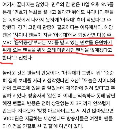 그 사건이 SNS를 통해 퍼지면서 아육대 폐지등의 비판을 받자 말도 안 되는 기사를 냄