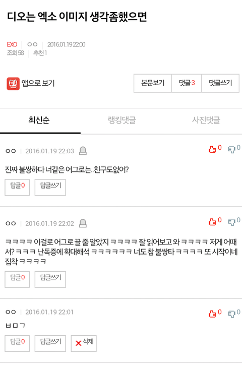 ㅂㅁㄱ썼으면 위에 쓰지말라고