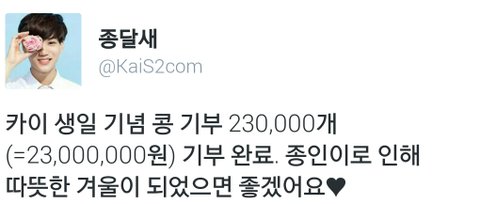 [2016 HAPPY KAI DAY PROJECT] 카이빈 23,000,000원 기부 완료