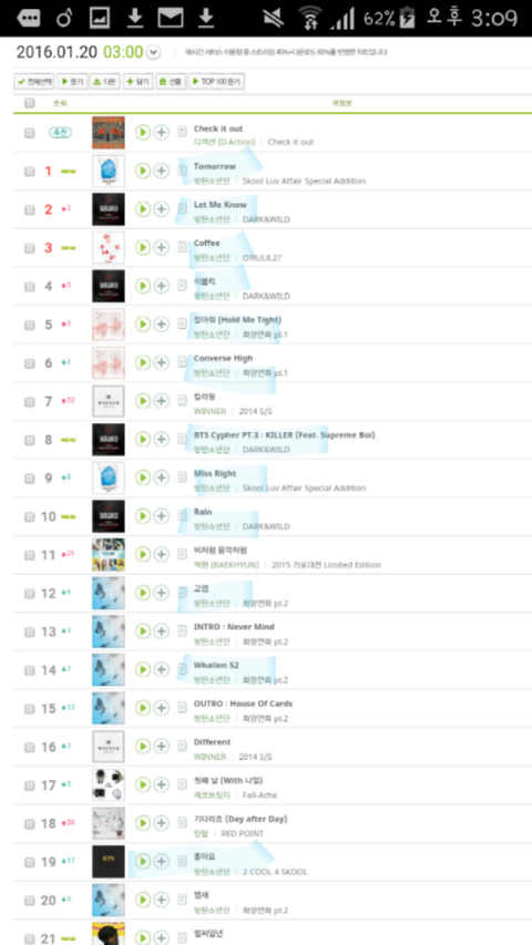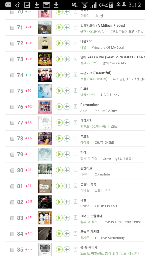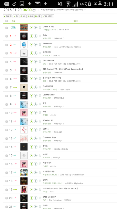 20위 권 안에 12곡 ㄷㄷ....사실 밑에 아니쥬도 있었는데 귀찮아서 캡쳐 안 함^^!!