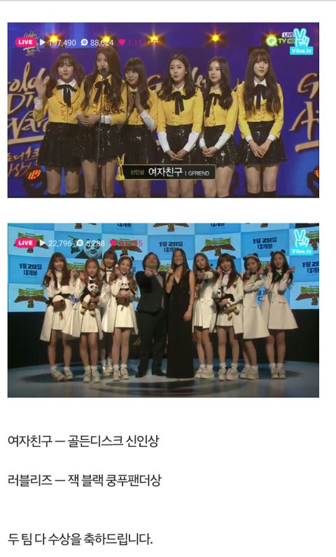 솔직히 러블리즈보단 여친이훨씬더났지;;그니까 여친이 신인상 받은거아니겠냐 지 언니들 신인상 못 받았다고 부들거리는거봐ㅋㅋㅋ 수준나온다 러블리즈팬들ㅉㅉ