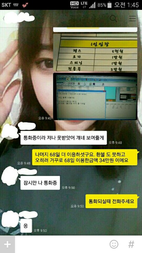 환불처리 하고 헬스장 이용정지 시킨다고 하네요..ㅋㅋㅋㅋㅋㅋ