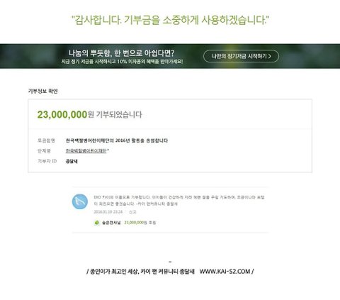 카이팬 커뮤니티 '종달새' 2300만원 기부