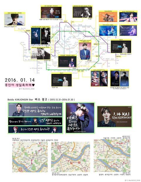 각종 카이홈과 팬클럽에서 지하철역 생일축하 광고