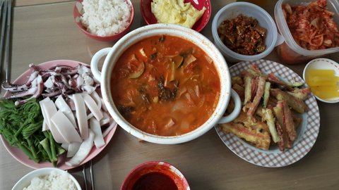 스팸많이 김치찌개 오징어 두릅초장 꼬지해서 한끼!