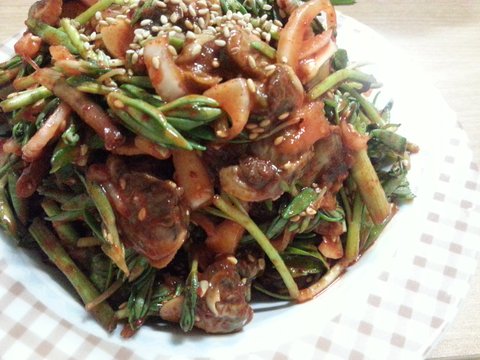 신랑이 돗나물을 좋아해서 잔뜩넣구 골뱅이무침!