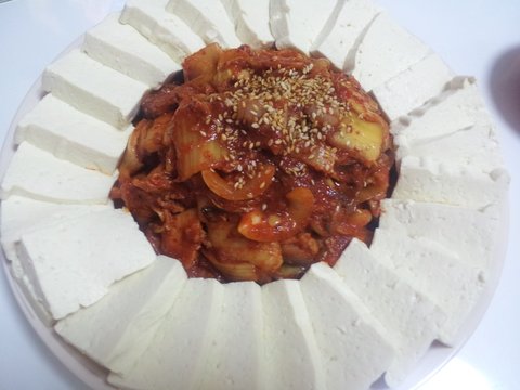 여전히 빙빙돌려플레이팅 밖에못한 두부김치...