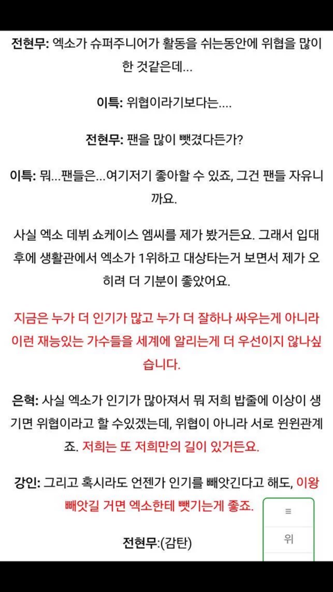존 나 사이다.,. ..스엠은 선후배관계 동료관계 좋음ㅜ
