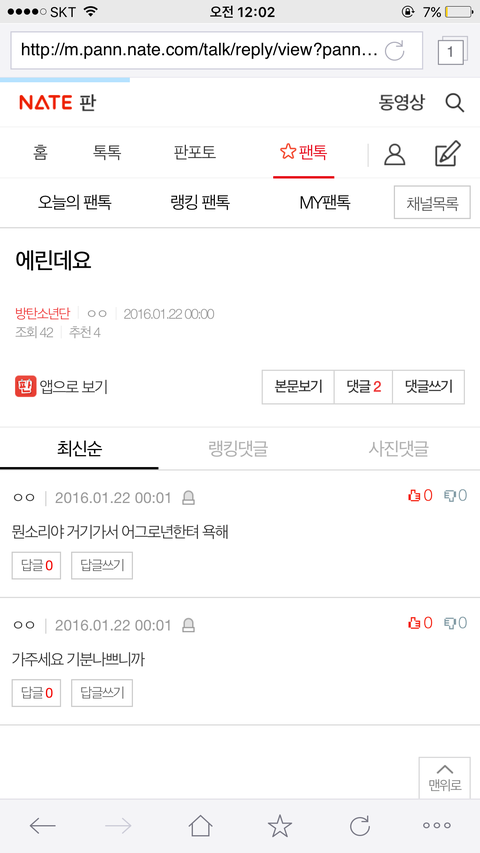 욕 적을라다 말았구만 역시 남의 팬톡엔 가면 안되는거였다