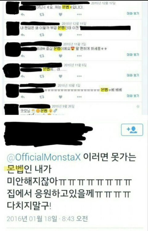 5분30초 부터몬스타엑스분들이 직접 몬베베가 아기라고 뜻을 밝힌 바가있습니다.