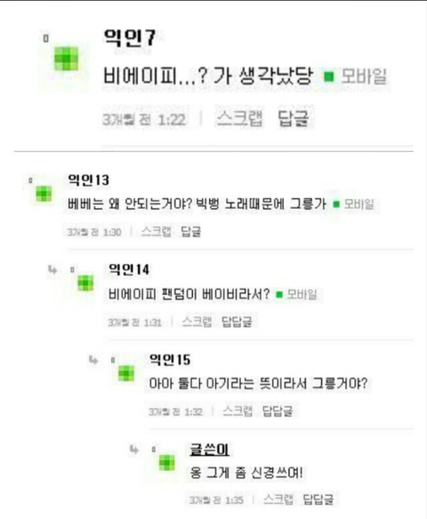 1.베베를 아기라는 뜻으로 생각하는 일반 대중들은 '같은 팬덤인가'라는 생각이 들어 착각 할 수도 있습니다