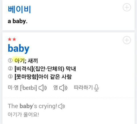 뜻이 같기 때문에 베이비를 베베라고도 부를 수가 있습니다.