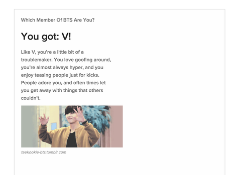 나 해외아미인데 미국에서 유명한 사이트가 있어 버즈피드라고 판이랑 좀 비슷해...근데 오늘 거기에서 방탄 퀴즈가 떴어 ㅋㅋ 근데 영어로 되있어