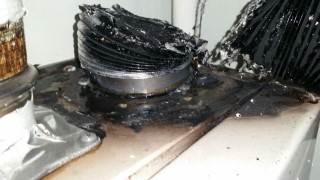 평소 보일러가 고장이 잘나니 불안하여 10분 뒤쯤 다시 열어보니 배기통(연통)에 불이 활활 붙어 타고 있었습니다.
