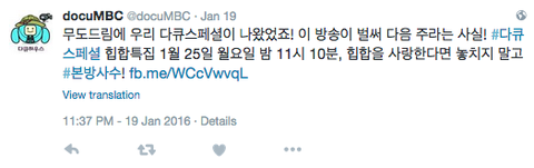 다큐 엠빙신의 확인사살 트윗... 그래서 결론은 랩몬이 나레이션할거 같다고오.. (지아코분도 나오신데! 둘이 같이 친목소취요ㅠㅠㅠ)
