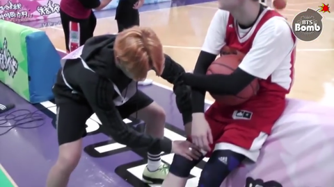 예전추석 개육대때 윤기가농구하고 짐니한테 다리주물러달라고했을때 짐니가 윤기다리주물러주는데 짐니손작잖아
