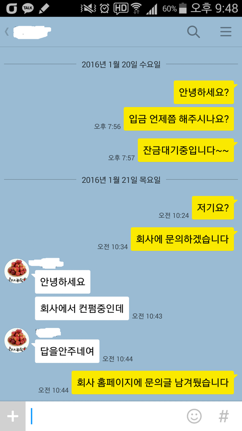 2일이 지나서 회사 홈페이지에 물어보려고 홈페이지에 문의글을