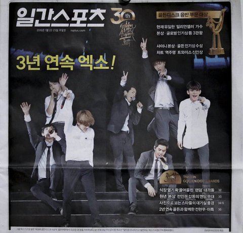 엑소 신문 1면에 자주나오네