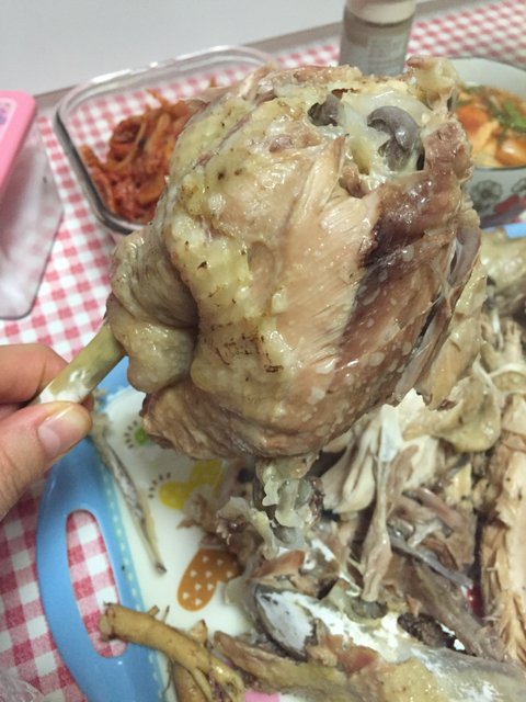 요건 토종닭을 직접 맘에드는놈을 잡아서 압력밥솥에