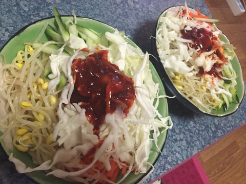 쫄면~요건 쫄면비빔장사서 각종 야채만 썰고 면삶아서