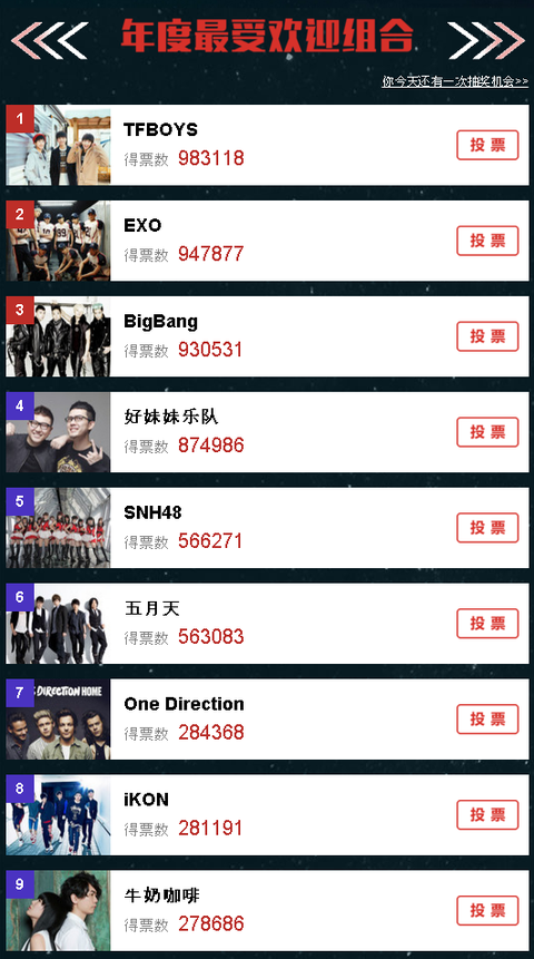 우리 어제까지만 해도 1위였는데 중국에서 겁나 유명한 아이도루한테 순위 뒤집혀서 2위됐고, 근데 2위도 위태위태한게 타가수가 치고 올라오고 있음 ㅇㅇ 그러니까 엄청나게 투표 해야함!! 다들 수고~ ㅎㅇㅌ!!!