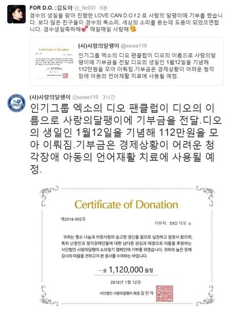 경수생일 기념 팬들의 기부 모음