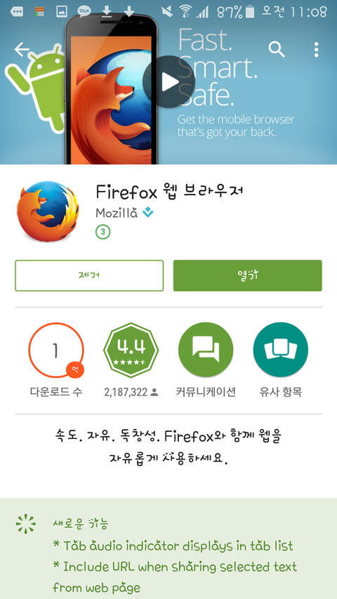 1). Goole play에 들어가서 firefox를 다운받는다.