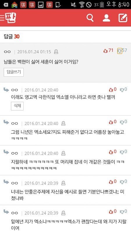 다른베댓에 추천눌러서 저 댓글을 베플에서 내려가게 해봐