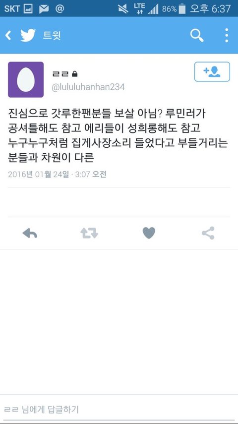 루민러가 공셔틀해도 참았대 ㅋㅋ 미친;; 그때 민석이 까던 블로그며 짹짹이계정까지 내가 본게 한두개가 아닌데 참았던게 그정도면.. 어휴.