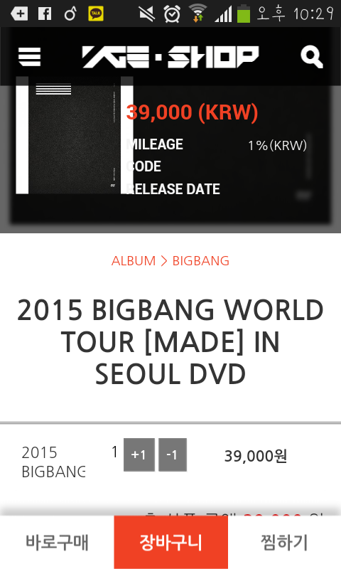 제목 그대로 와이지샵에서 콘서트 dvd 예약판매하니까 살 사람들은 얼른사~ 나도 샀다는.. 가격은 39000원이야