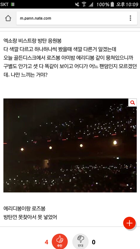 역시 봉 모양으로 구분을 하던, 아미분들과 엑셀분들. 그리고 사진에는 언급이 없지만 이번 골든디스크에 있던 뷰티분들까지, 색은 거의 유사한 세 팬덤이 유일하게 구분하던 봉 모양.