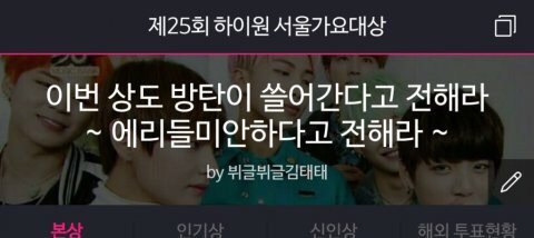 방1탄 팬들이 (이거밖에 캡쳐 못함) 석아대때 나불대는거ㅋㅋㅋㅋㅋㅋㅋ결국 얘네 참가상 하나 받고 박수셔틀 우리가 쓸었지 3관왕 최초로 3연속 대상