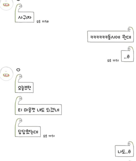 오늘부터 사귀는건가봐 ㅠㅠㅠㅠㅠ계속톡중이야..!!!!!!