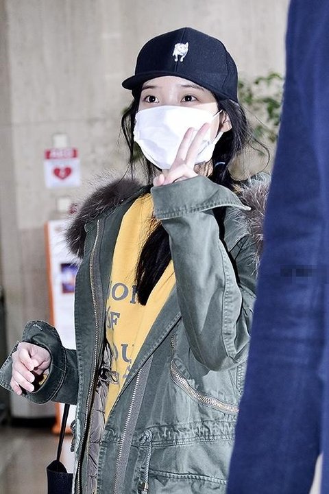 극심한 한파때문인지 아이유도 따숩게 차려입고 입국함