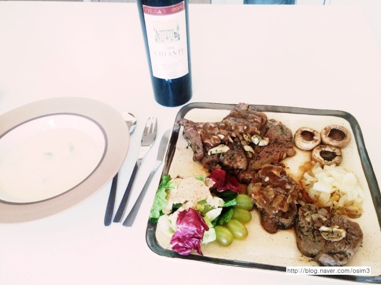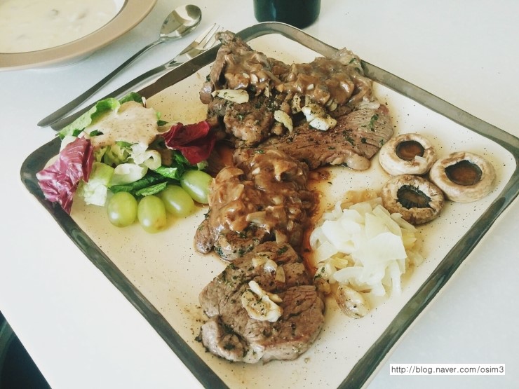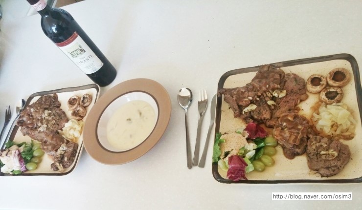 스테이크소스도 기존 소스에 양파랑 크림치즈랑 버섯이랑 등등