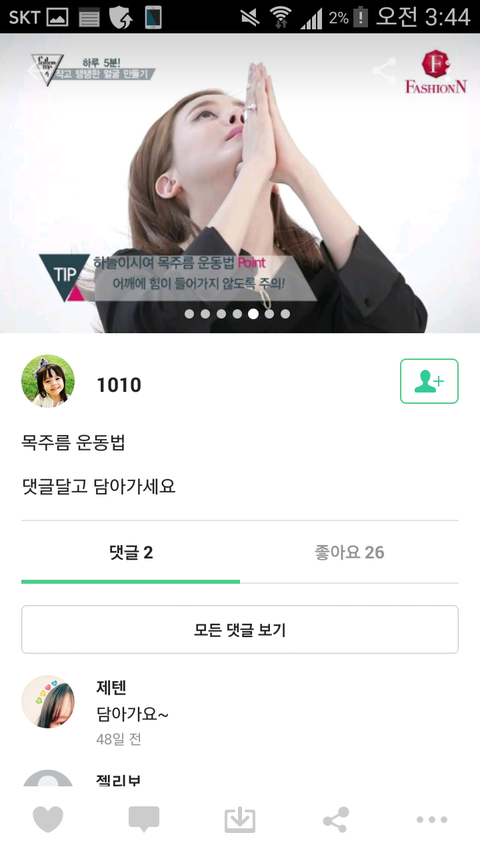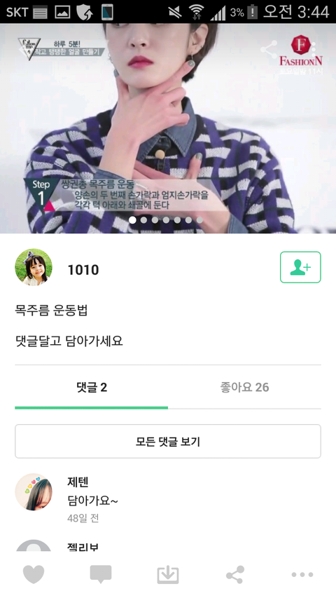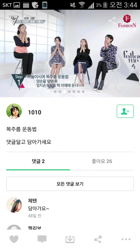 목주름운동법알려줌~들와