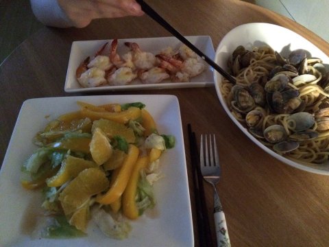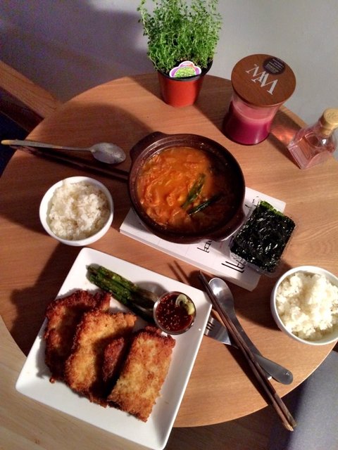 고기를 별로 안좋아해서 관자와 민어스테이크 아스파라거스를 곁들였습니다. 소스는 미나리와 래몬으로 만들었는데 상큼하다고 좋아하네요ㅋㅋ
