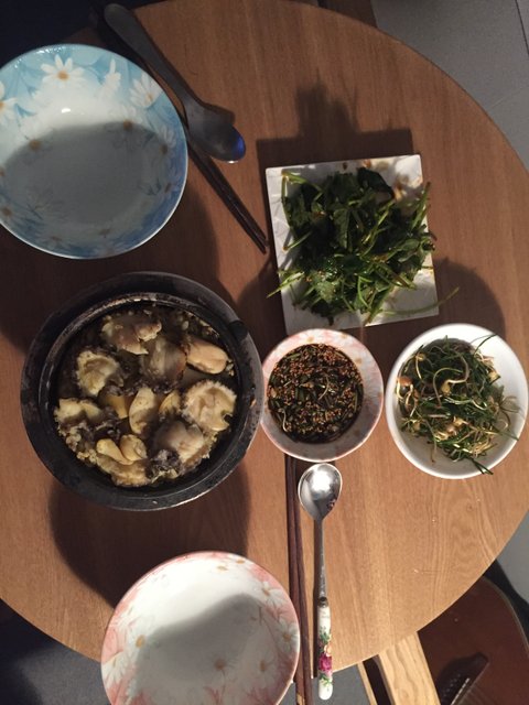 전복버터구이는 느끼하실까봐 참나물을 같이 올리고