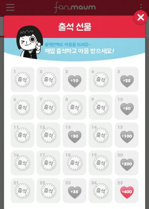 팬마음이라는 앱을 깔고 매일매일 접속해주시면 출석체크가 되어서 마음을 받으실 수 있습니다!