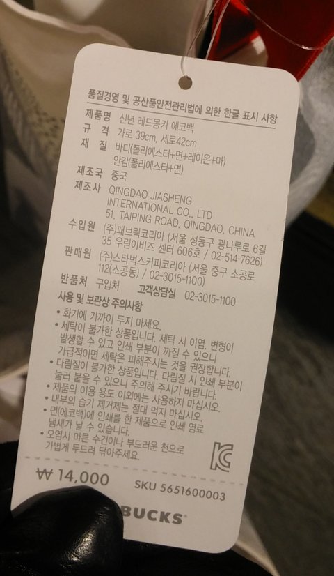 때는 2016년 1월 3일 스*벅*커피점을 갔다가 한 에코백을 발견하였습니다. 올해 병*년을 타겟으로 만든거더라구요.. 그동안 작은 에코백으로 고생해서 하나 장만하려고맘에 드는 거 조금만 조금만 더 기다리다 빨간색이 너무나 맘에 들어 구매를 하였습니다.