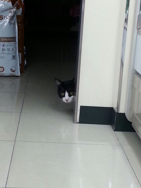 택배아저씨나 조금덩치있으신 남자손님들이 오시면 창고로달려가서 숨고는 고개만 빼꼼내밀고 손님가시면 다시나와요 은근겁이많다니까요?